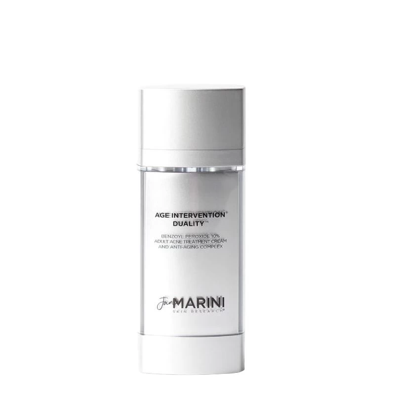 Serious acne control and dramatic benefits to aging skin, in one amazing product. Its unique dual chamber dispensing solution combines some of the most proven, yet previously incompatible, technologies in one product. The maximum allowed percentage of ultra-micronized benzoyl peroxide, highly concentrated all-trans-retinol, green tea extract, anti-aging peptides, advanced hydrators and antioxidants deliver unparalleled results in an easy to use solution. Age Intervention Duality addresses even the most stubborn adult acne while simultaneously minimizing the appearance of fine lines and wrinkles.