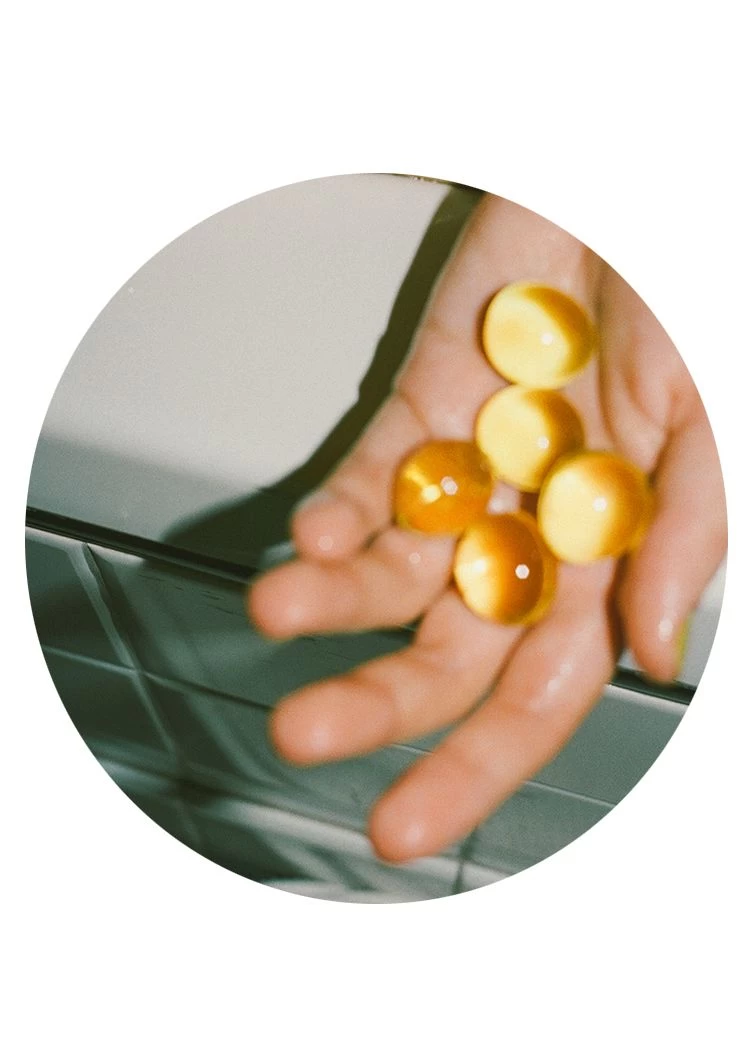 Introducing a better way to bathe. These seaweed-encased bath beads contain our signature Fur Oil and a blend of softening oils. They dissolve easily in warm water and gently nourish your skin, leaving you silky soft and relaxed. Unlike the bath beads of the 90s, which were produced with gelatin casings, Bath Drops contain absolutely zero animal products and are made with clean ingredients. Drop 2-3 into your bath for a replenishing soak.