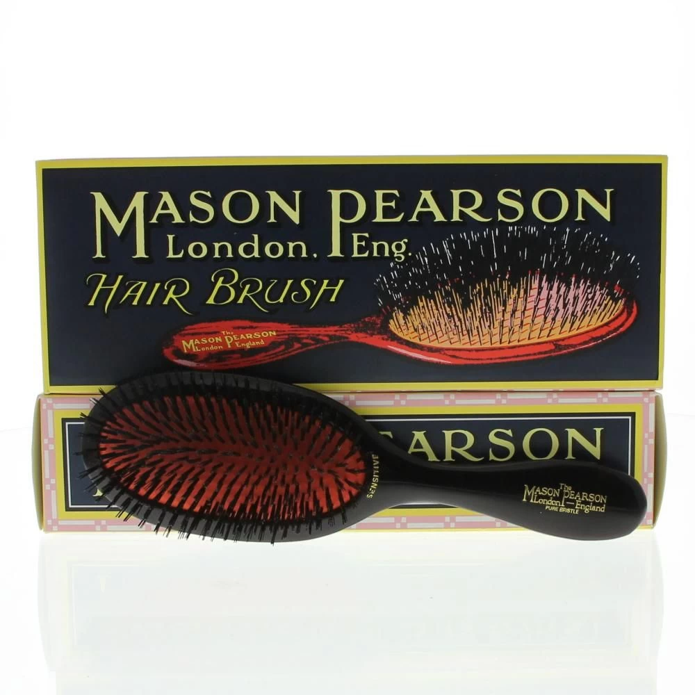 Mason Pearson hairbrushes have been loved by generations, a British design icon that still out performs its rivals. The famous orange pad fills with air through a small hole in the tip of the brush, giving the hairbrush a luxurious soft cushion. The high quality boar bristle ensures beautiful results and longevity of use. The plastic handle shape was developed from the original wooden models, which are still made in small quantities. These handles are hand-finished to remove any sharp edges and make the hairbrush more comfortable to hold.