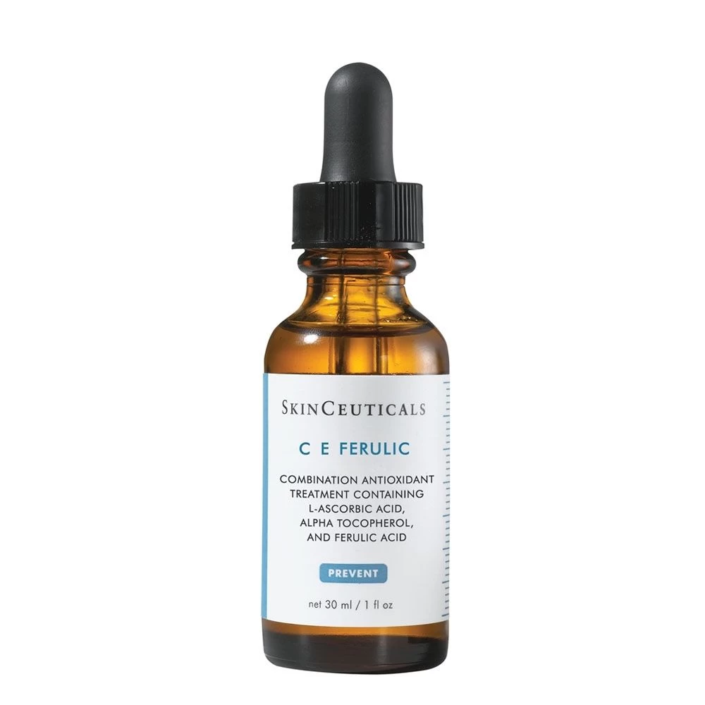 Skinceuticals C E Ferulic features a Skinceuticals antioxidant combination of 15% pure vitamin C and 0.5% ferulic acid to enhance environmental protection against damage caused by free radicals. This vitamin C serum helps neutralize damaging free radicals induced by UVA/UVB, infrared radiation (IRA), and ozone pollution (O3), which may lead to visible signs of accelerated skin aging. In addition to antioxidant protective benefits, C E Ferulic improves signs of aging and photodamage, the appearance of lines and wrinkles, and the loss of firmness, while brightening skin’s complexion.