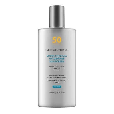 Sheer Physical UV Defense SPF 50 is an ultra-sheer, sunscreen fluid that combines 100% mineral filters with artemia salina, a plankton extract to help boost skinās natural defenses to UV- and heat-induced stress, offers broad spectrum protection for all skin types, including sensitive. One of the best sunscreens for the face, it is formulated with Titanium Dioxide, a broad spectrum 100% mineral filter, and enhanced with artemia salina, a plankton extract to help boost skinās natural defenses to UV- and heat-induced stress. This silky sheer fluid spreads easily and dries quickly, leaving no residue. Dermatologist-tested for safety.