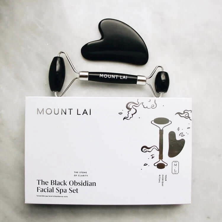 Unlike the other stones, Black Obsidian naturally retains warmth and is great to use on congested, blemish prone skin. The warmth of the obsidian encourages stimulation of the lymphatic system and circulation. To warm the Black Obsidian tools, Mount Lai recommends placing them in a glass of warm water.