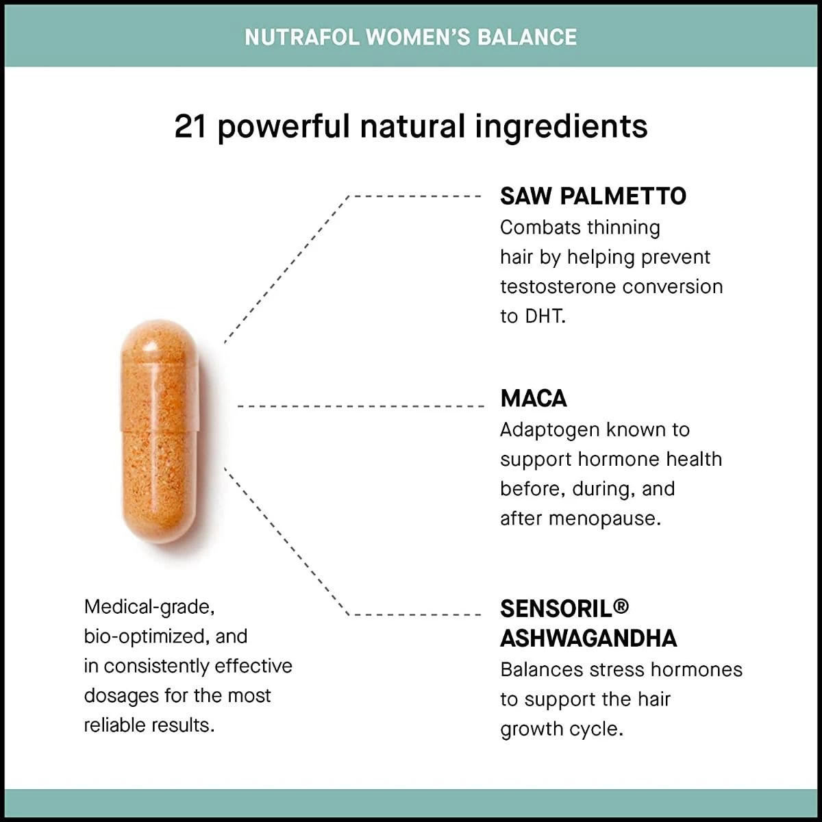 Sensoril® Ashwagandha: Balances stress hormones to support the hair growth cycle.